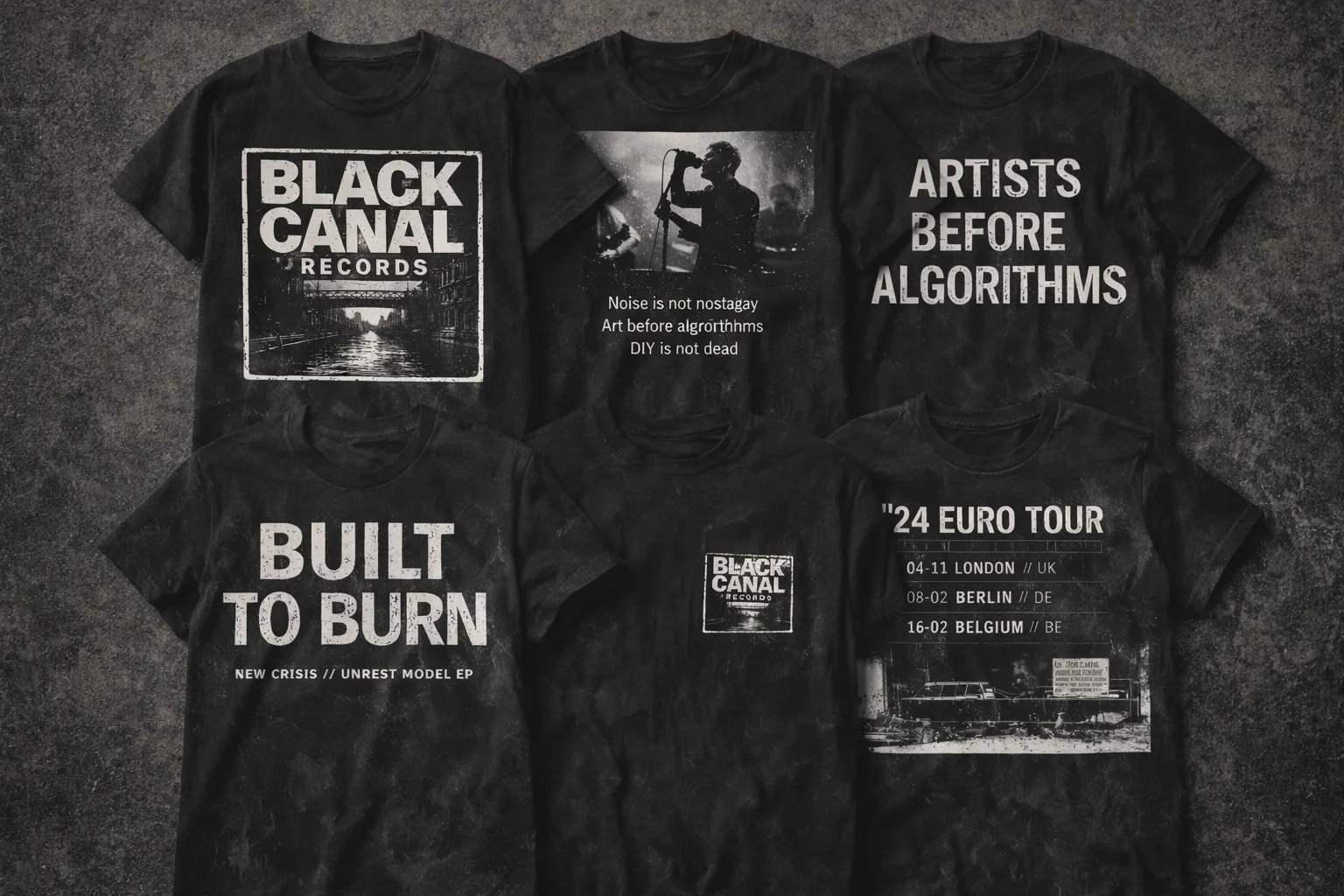 Black Canal Records needed a more solid visual foundation to support recurring production, graphic coherence and continuity across different pieces and supports. The project required a more systematised approach, capable of maintaining identity and visual strength without depending on isolated solutions for each new need.