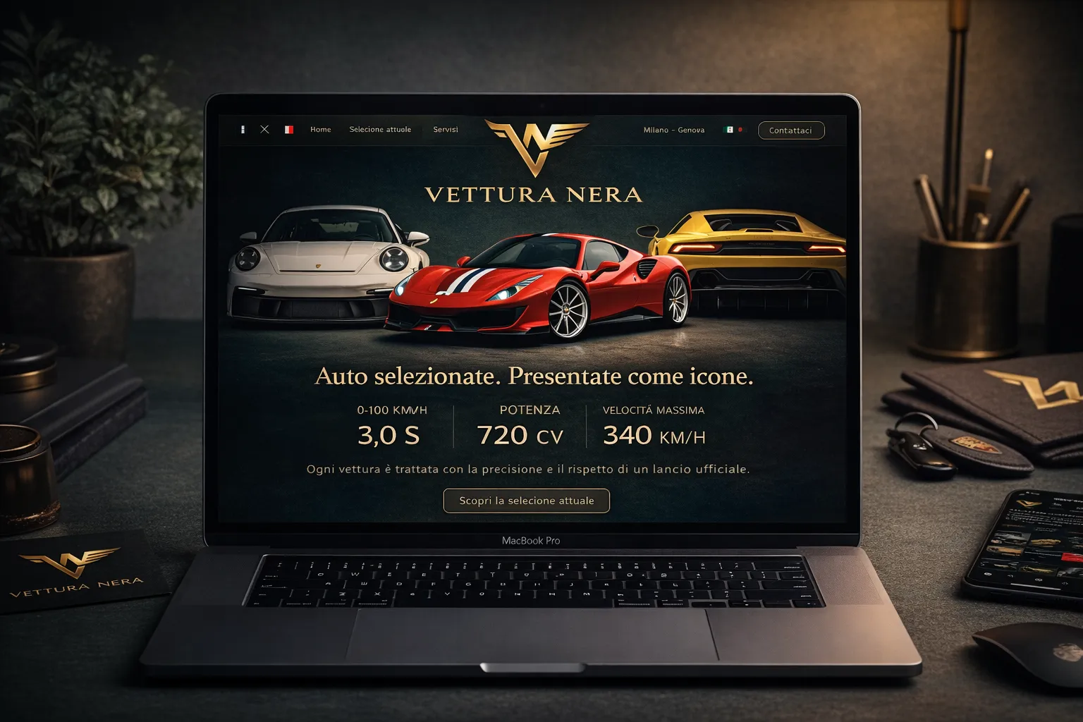 Vettura Nera is a project connected to the premium automotive world, with a strong offer and a context where perception, detail and visual presence carry decisive weight. The goal was to build a clearer and more consistent language, capable of reinforcing the brand’s sophistication without falling into excess or visual noise.